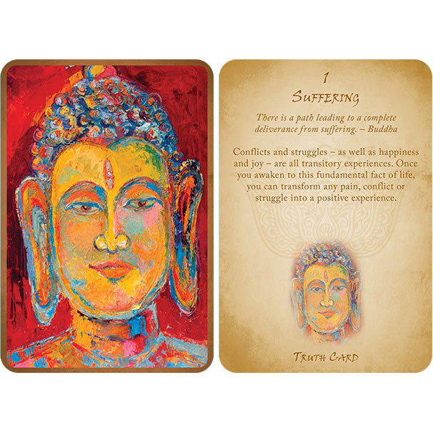 Buddhist Teachings: The deck is inspired by core Buddhist concepts such as mindfulness, meditation, compassion, the Four Noble Truths, and the Eightfold Path. The cards are designed to offer insights into how to live a more peaceful, centered, and awakened life, based on Buddhist principles.