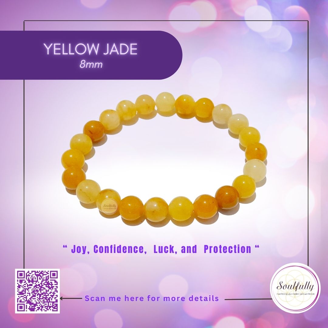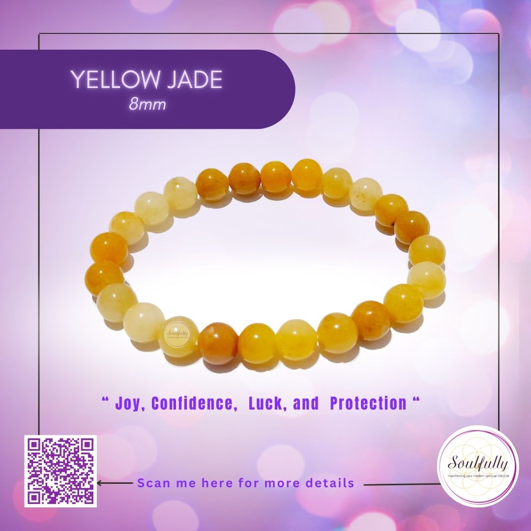 Yellow Jade, a warm and radiant stone, is highly valued for its cheerful energy and nurturing properties. It is associated with wisdom, happiness, and spiritual insight, making it a popular choice in crystal healing and jewelry.