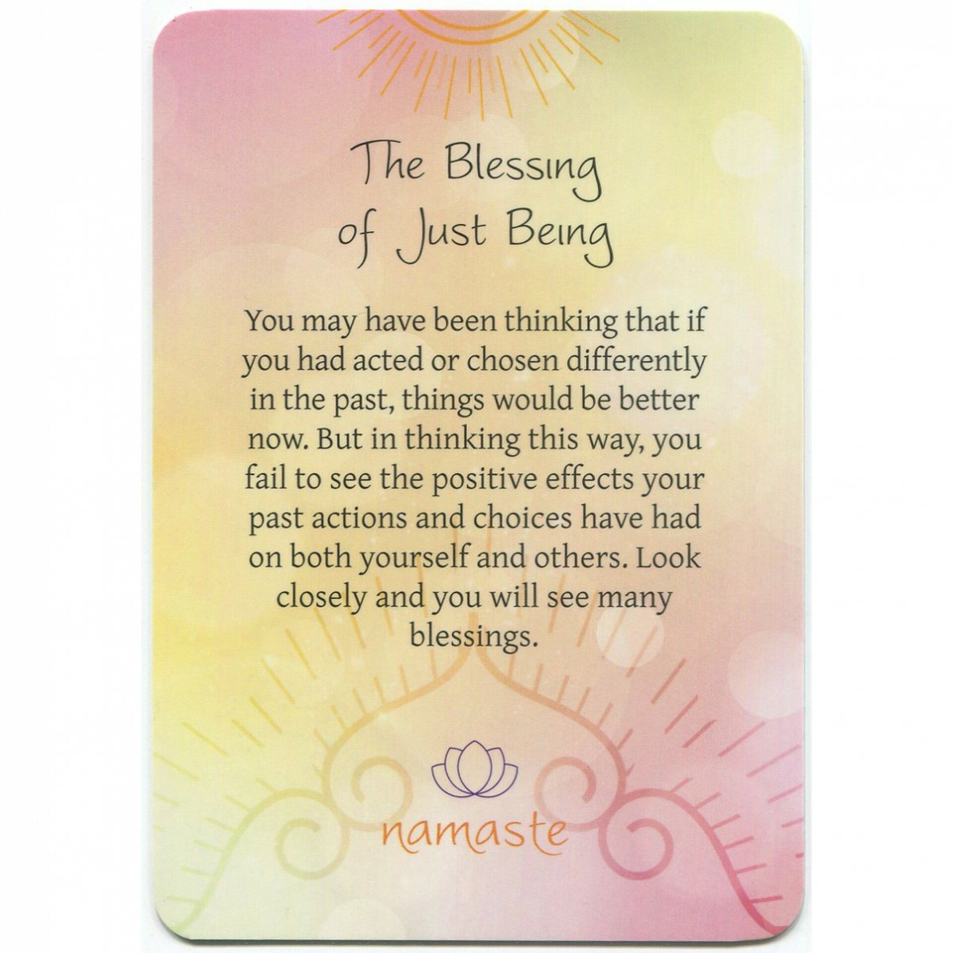 Namaste is an ancient Sanskrit blessing, greeting, and salutation. It means: "I honor the spirit in you which is also in me." It is a simple yet powerful acknowledgment that we are ultimately one in spirit. The radiant artwork and inspiring messages of this deck are designed to bring the energy and intention of this Namaste blessing into your everyday life. Draw a card and be guided to a space of peace and clarity within you.