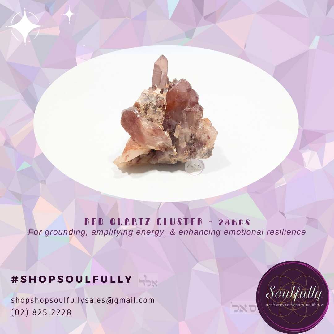 A Red Quartz Cluster is a powerful crystal formation that combines the energizing properties of quartz with the grounding and vitalizing energy of red hues. Here are its key uses and benefits: