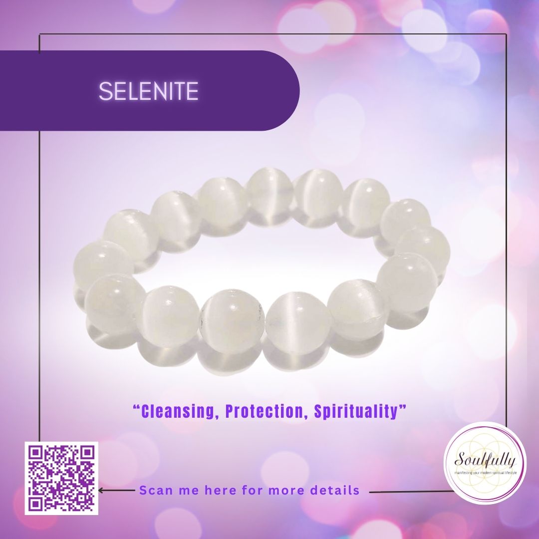 The Selenite crystal is connected to the higher chakras, namely the crown chakra which is the center of higher consciousness. Through this association, Selenite allows you to elevate your energy and raise your vibration, aligning you with a higher frequency. By filling your entire being with light, you can block out lower vibrational energy to protect your spirit. In this way, Selenite can be used as a protective stone to shield you from darker energy.