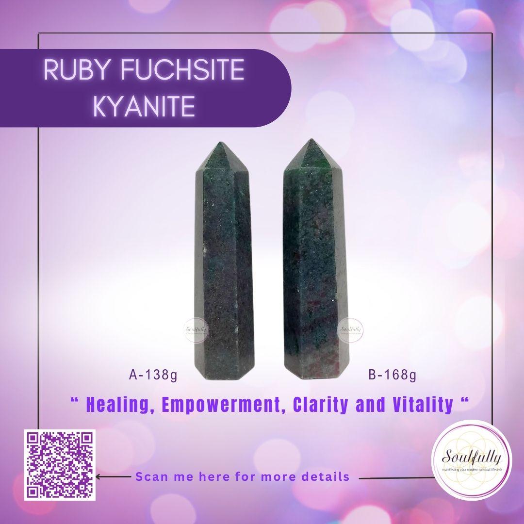 Ruby Fuchsite Kyanite is a powerful combination crystal that blends the energies of Ruby (passion & vitality), Fuchsite (heart healing), and Blue Kyanite (clarity & communication) into one stone. When shaped into a Single Terminated Tower Generator, it amplifies and directs these energies with focused intention.