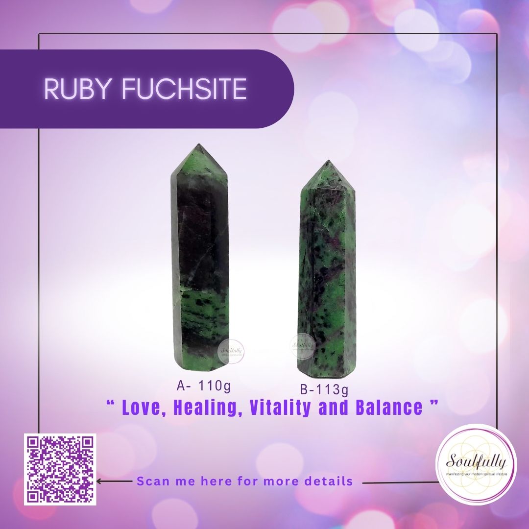 Ruby Fuchite is a naturally occurring combination of red Ruby crystals embedded in green Fuchite (a type of Muscovite mica). It blends the heart-centered, calming energy of Fuchite with the passionate, life-force energy of Ruby, making it a powerful stone for emotional healing, vitality, and love.