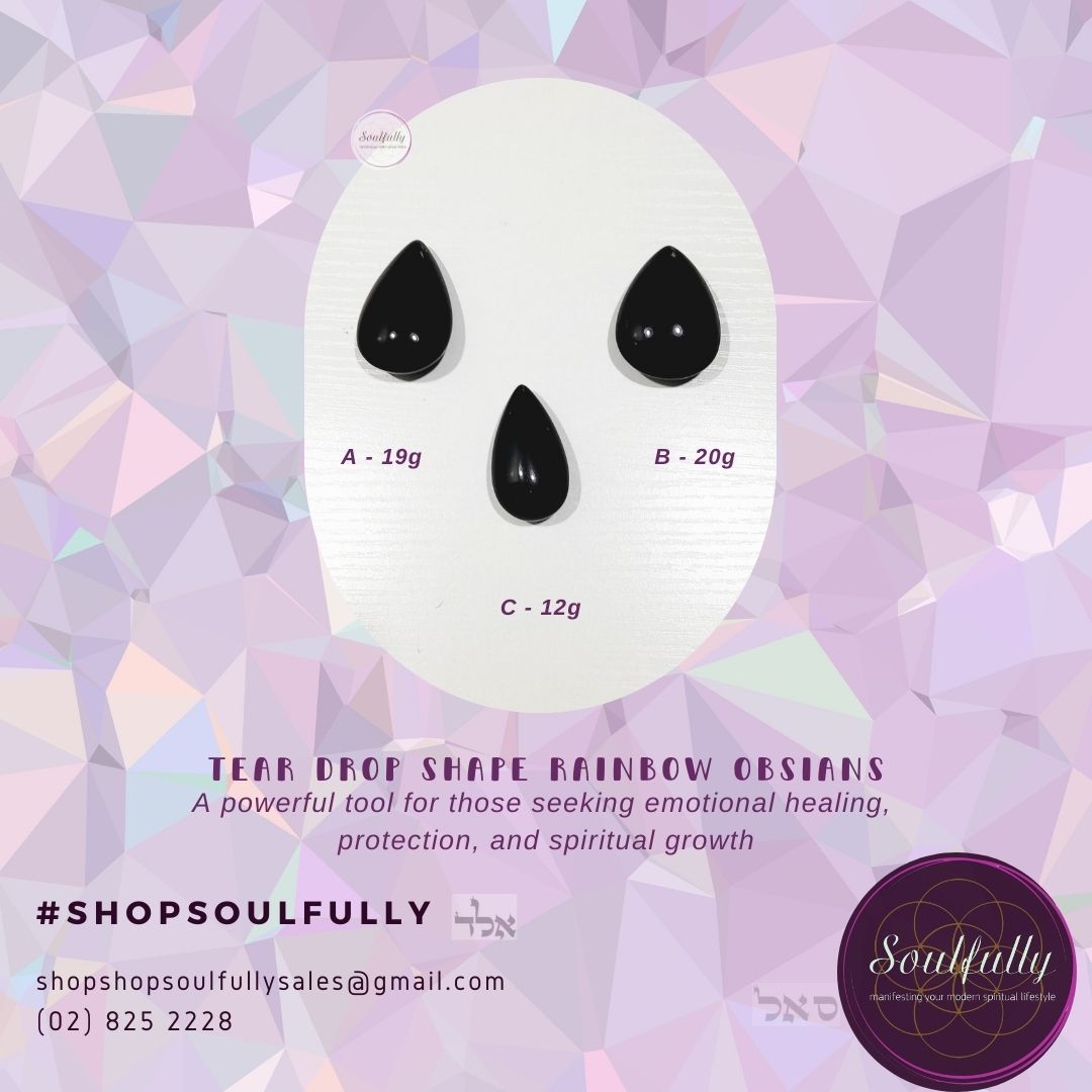 - Protection: Rainbow Obsidian acts as a strong protective shield, especially against negative energies or psychic attacks, and is enhanced by the symbolic nature of the teardrop.